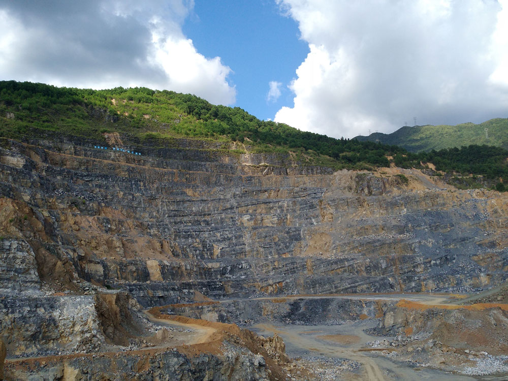 中甲石灰石礦為華潤水泥(龍巖曹溪)有限公司的兩條共計日產(chǎn)4500t/d熟料水泥生產(chǎn)線的配套礦山。于1997年9月投入生產(chǎn)至今,設計生產(chǎn)規(guī)模為168萬噸/年,采礦證面積0.6524km2,開采標高+750至+1070m。礦山為半山坡半凹陷露天礦。